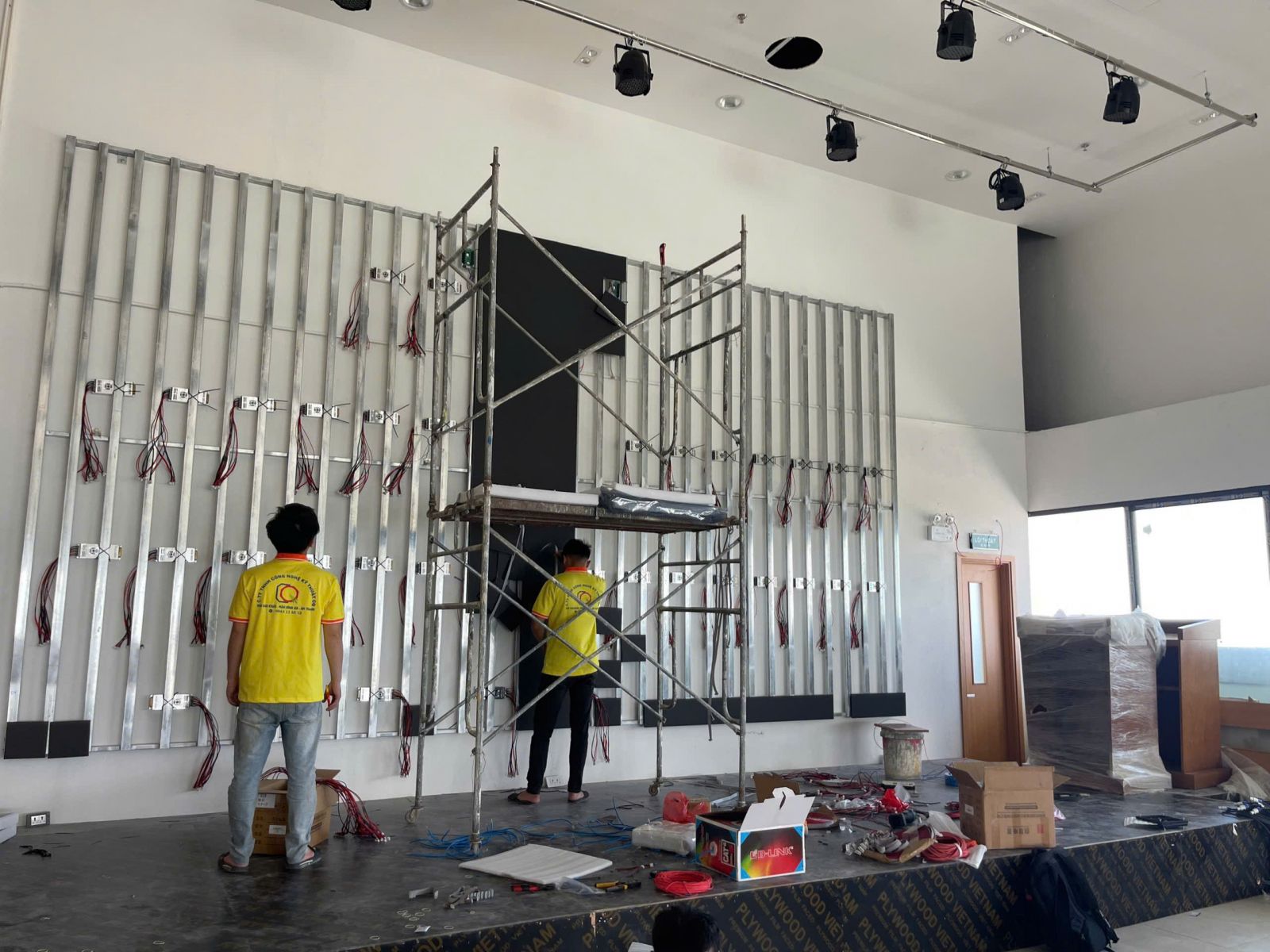 Quy trình lắp đặt màn hình LED hội trường của CQ